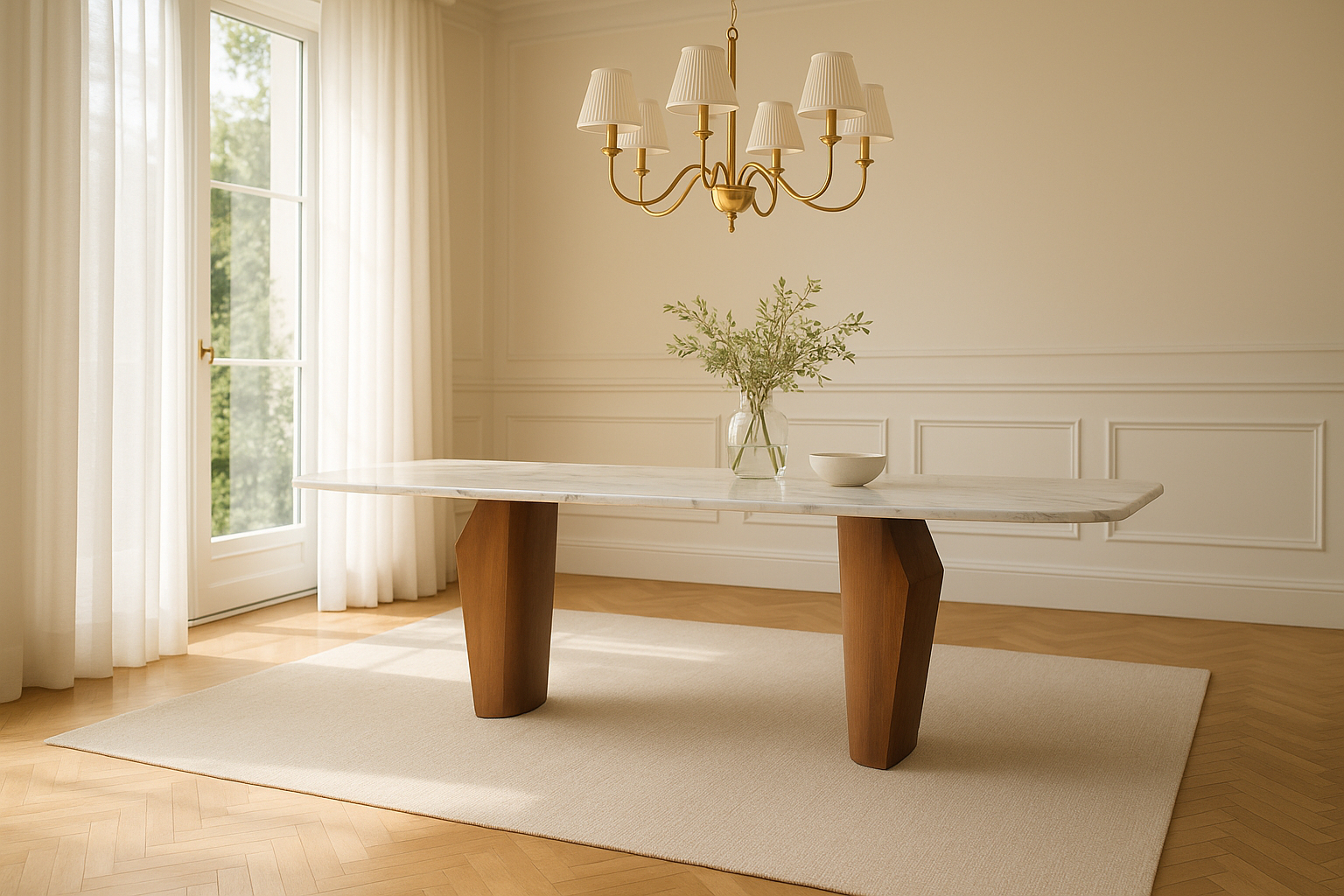 Discover the timeless beauty of design with the Dining Table Ester 1, a piece of furniture that harmoniously brings together two noble materials: solid wood and elegant marble. Wood brings warmth and authenticity, while marble adds a sophisticated and modern touch, transforming the table into a central element of any home.